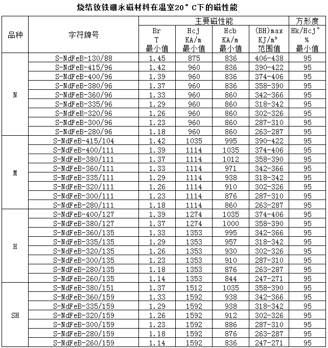 由于釹鐵硼茲鐵的主要原料鐵非常便宜,稀土釹的儲藏量較釤多10-16 倍,故其價(jià)格也較釤鈷磁鐵低很多。釹鐵硼磁鐵的機械性能比釤鈷磁鐵和鋁鎳鈷磁鐵都好,更易于切割和鉆孔及復雜形狀加工。釹鐵硼磁鐵的不足之處是其溫度性能不佳,在高溫下使用磁損失較大,最高工作溫度較低。一般為80攝氏度左右,在經(jīng)過(guò)特殊處理的磁鐵,其最高工作溫度可達200攝氏度。由于材料中含有大量的釹和鐵,故容易銹蝕也是它的一大弱點(diǎn)。所以釹鐵硼磁鐵必須進(jìn)行表面涂層